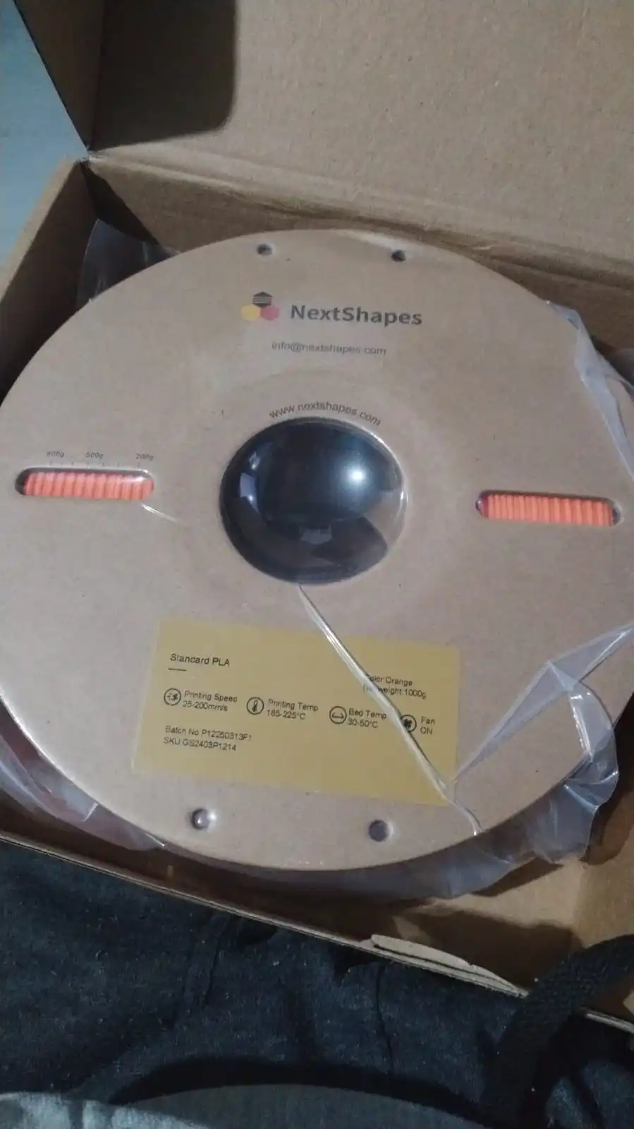 The package is thinked so it protects the spool in a very good way but doesn't occupy that much space and the PLA is nicely sealed inside of the box.